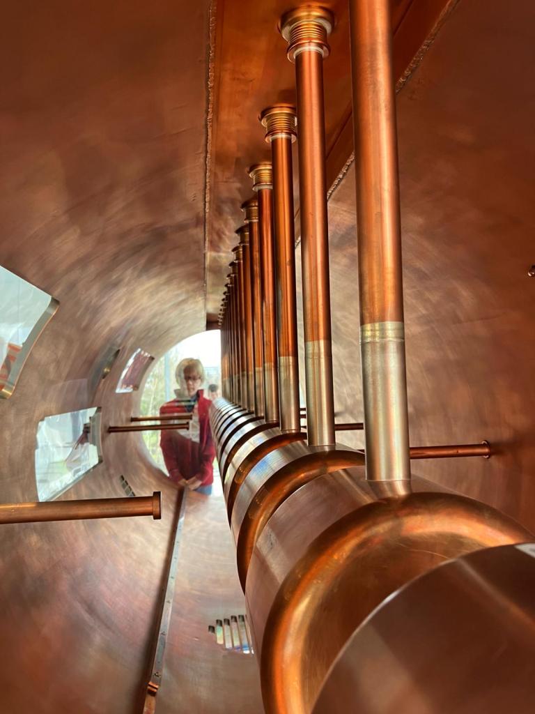 Linear accelerator which uses powerful magnets to push the beam of hydrogen particles with magnets to get them to the right speed.