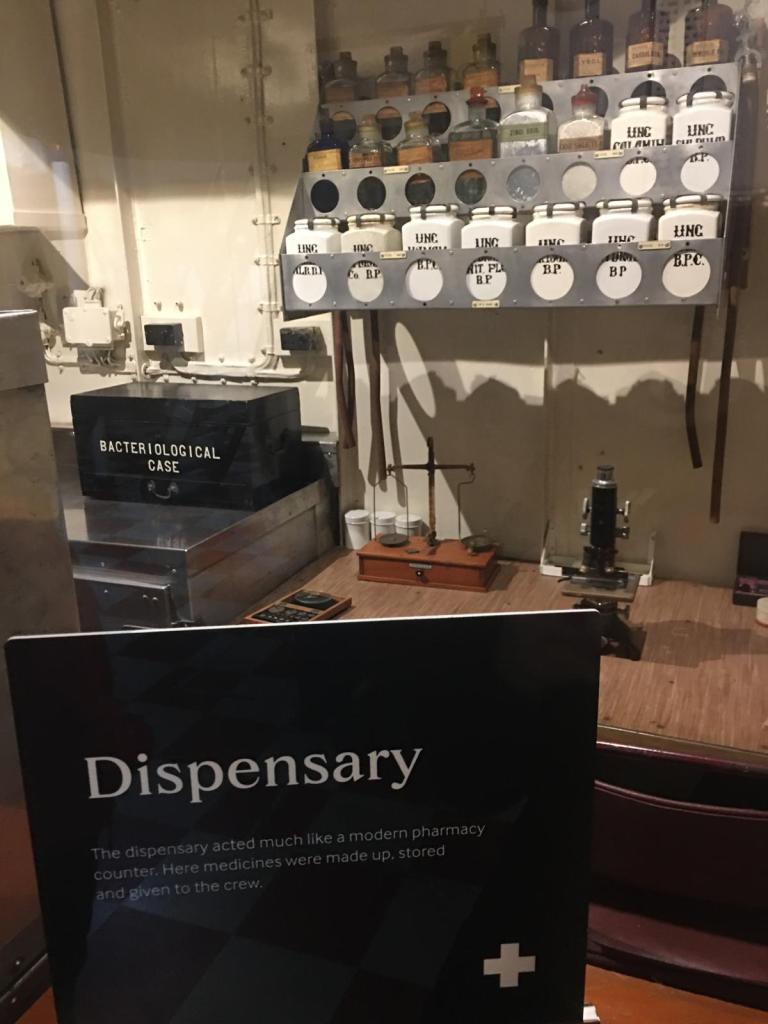 There was a hospital located at the bottom middle of the ship and it has extra lead panelling in the x-ray block. Here there was a tiny room with a big box and that was the X-ray machine and it was controlled from the outside of the room. There was a tiny little screen under it for the doctors.