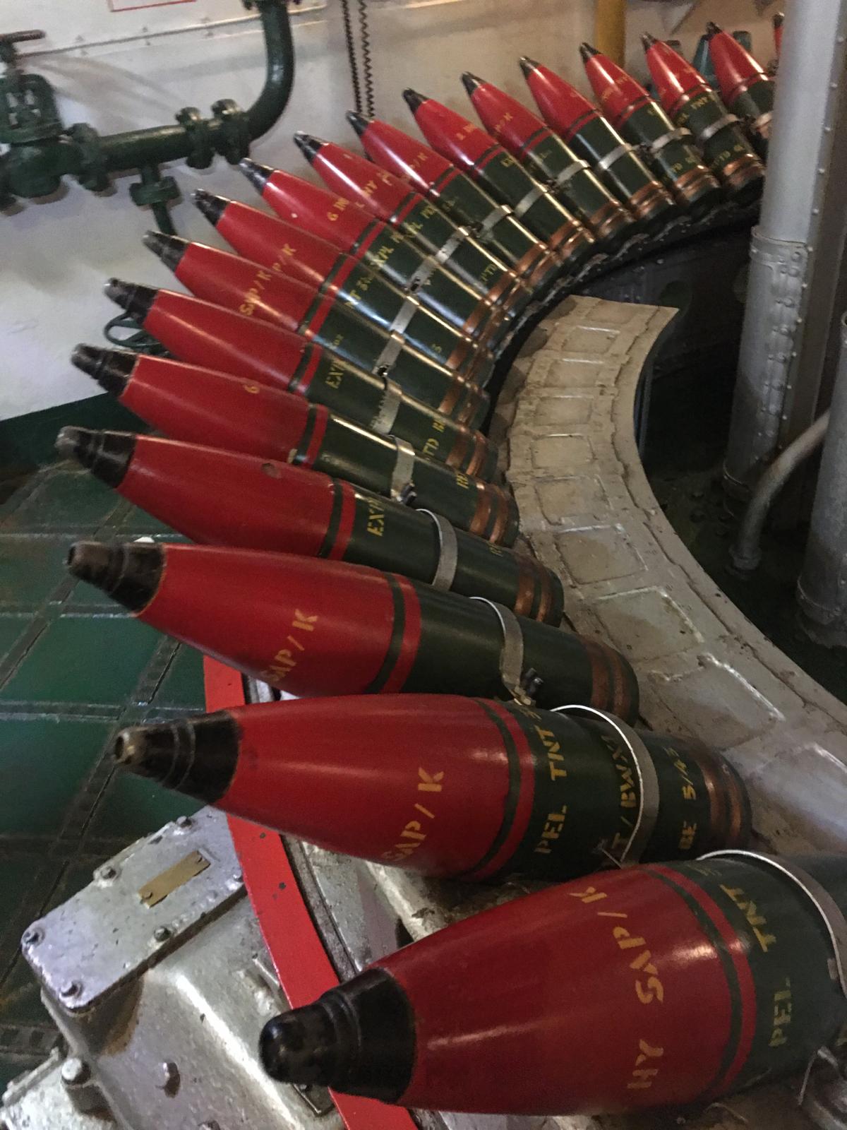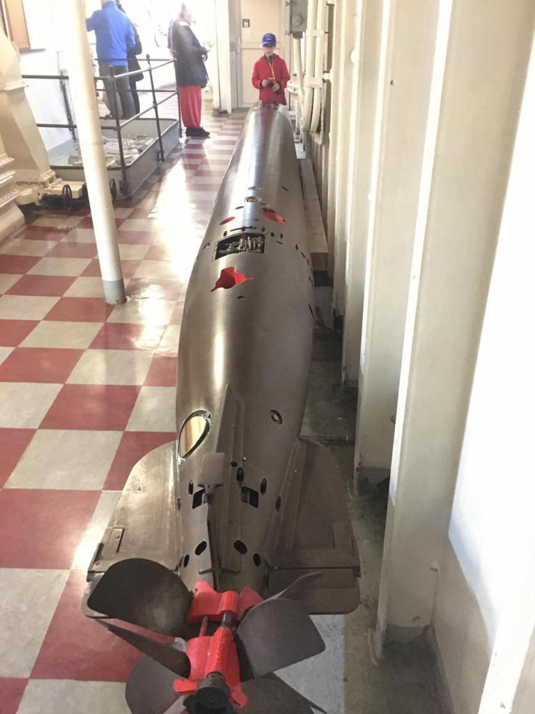 There was a torpedo from one of the two torpedo tubes located in the centre of the ship. There was a room full of bombs and they had an escalator that took them up to the guns. I don’t think that this would be a good place to work because there was always the fear that it would blow up.