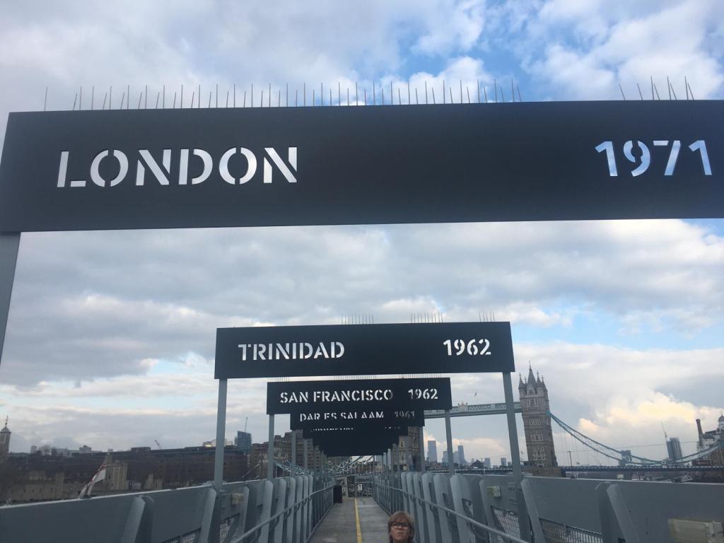 These pictures show me at the stern and Tower Bridge is just behind me and about to open. The cannon in the third picture was an anti-aircraft gun, there were four of these on the boat. There was one at the front, one at the back and one on each side.