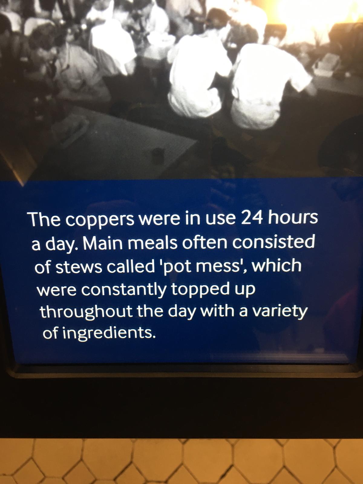 Onboard was a huge big kitchen which is the size of a house. They were cooking all the time to feed all the sailors all round through the night.