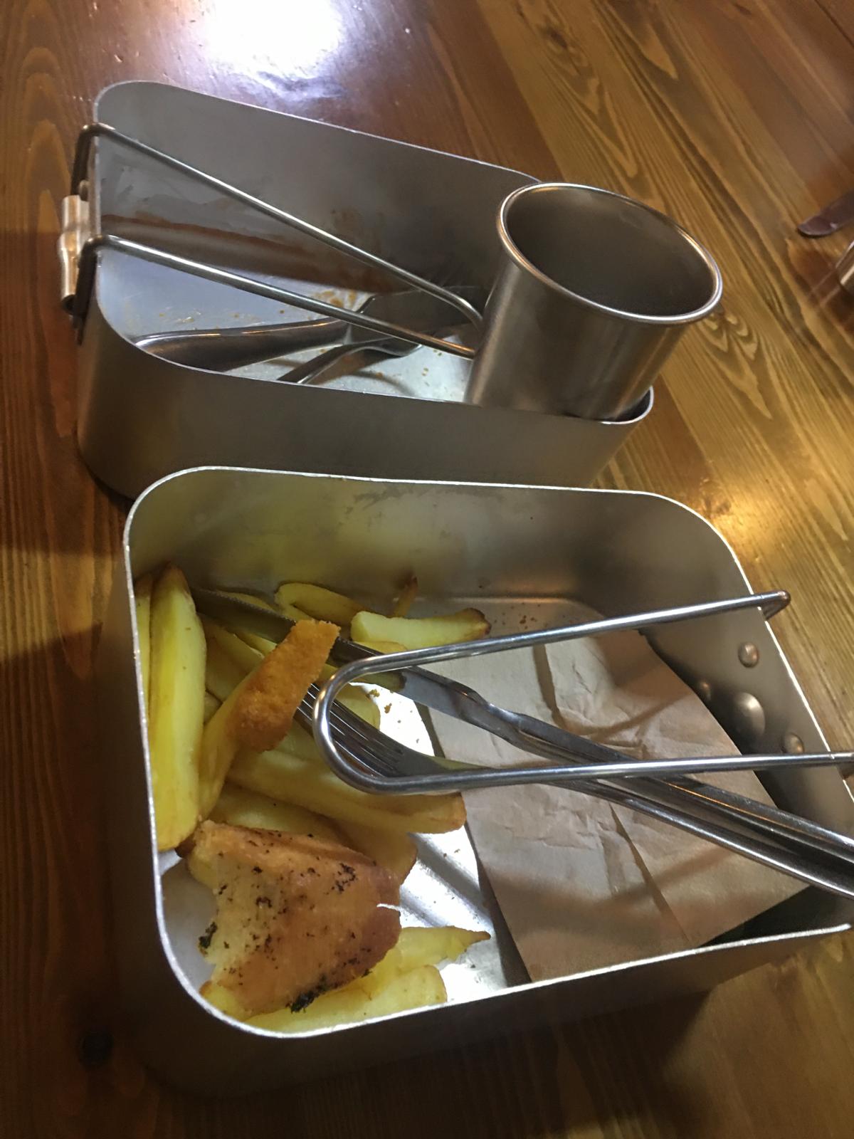 I ate in The Mess, it is not messy at all, and I ate from a mess tin. They are pretty sharp and it was quite interesting.
