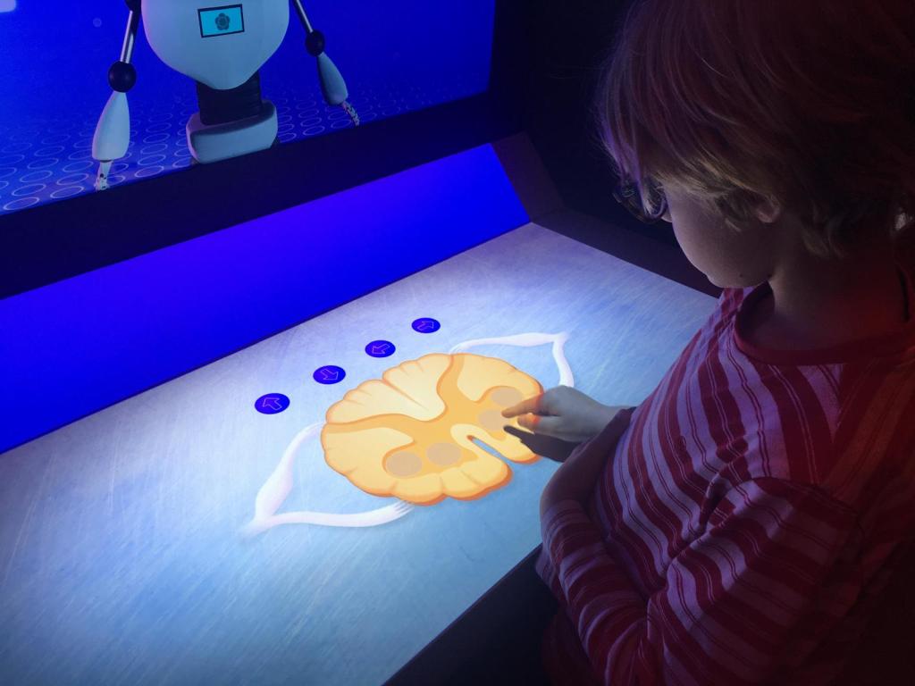 We went into the STEM POD in the afternoon and saw the nucleus and that was amazing. Nobody expected it to open up. It was full of crazy games like Poo Racer about digestion and mum managed to set fire to a baby we were supposed to be helping in another game. That was really funny.