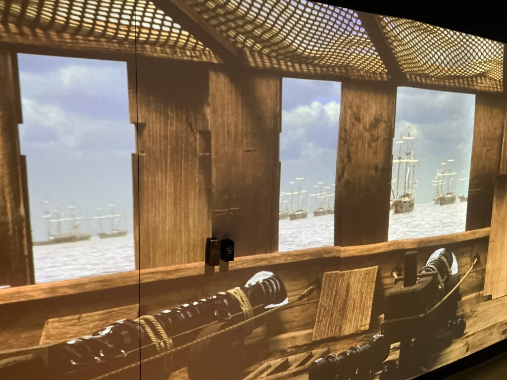 It is a museum designed to bring the ship to life. The museum does this with projections onto the timbers of the ship that show people doing their jobs.