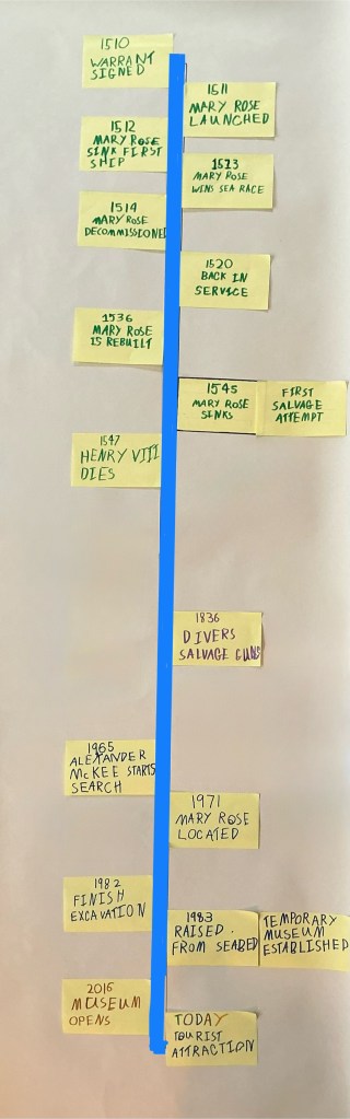 I will explain how it was built, who it was built for, when it went to war, who was on the ship, how they lived on the Mary Rose and how it was recovered from 400 years under the sea.