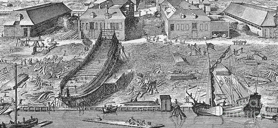 The shipyards were busy, noisy and hectic places because to build a big ship you need a lot of carpenters and a shipwright, who would work out the dimensions and design of the ship.